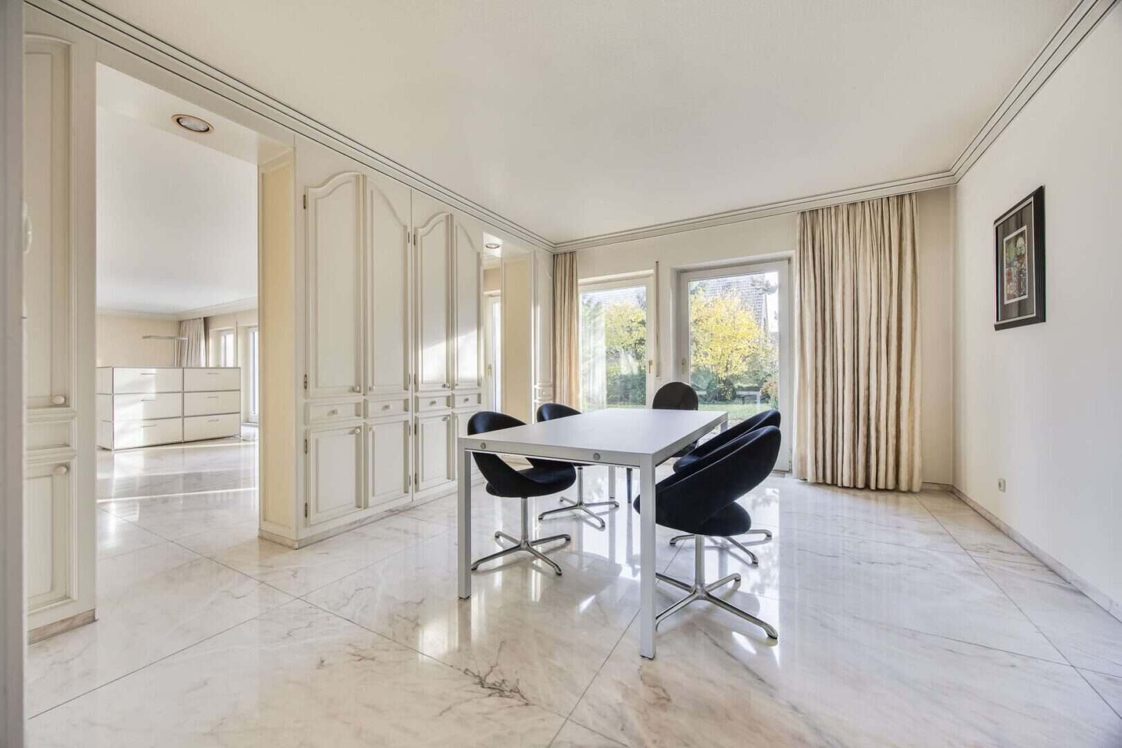 Die großzügige Wohnfläche von ca. 298 m² erstreckt sich über mehrere Ebenen und fügt sich harmonisch in das 1.530 m² große Grundstück ein, das durch seine gewachsene Bepflanzung ein hohes Maß an Privatsphäre und einen naturnahen Rückzugsort bietet. Bereits beim Betreten des Hauses offenbart sich der exklusive Anspruch des Anwesens: Das Erdgeschoss ist vollständig mit fein geschliffenem und poliertem portugiesischem Marmor Rosa Oniciato Weiß (20–25 mm) ausgestattet, der dem Haus eine außergewöhnlich elegante und repräsentative Atmosphäre verleiht. Auch die Fensterbänke sowie das Hauptbadezimmer im Obergeschoss wurden mit hochwertigem Naturmarmor ausgeführt und unterstreichen den luxuriösen Charakter der Immobilie.